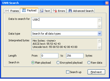 visualize Ultrawideband frames and Wireless USB timing allocations, zoom or